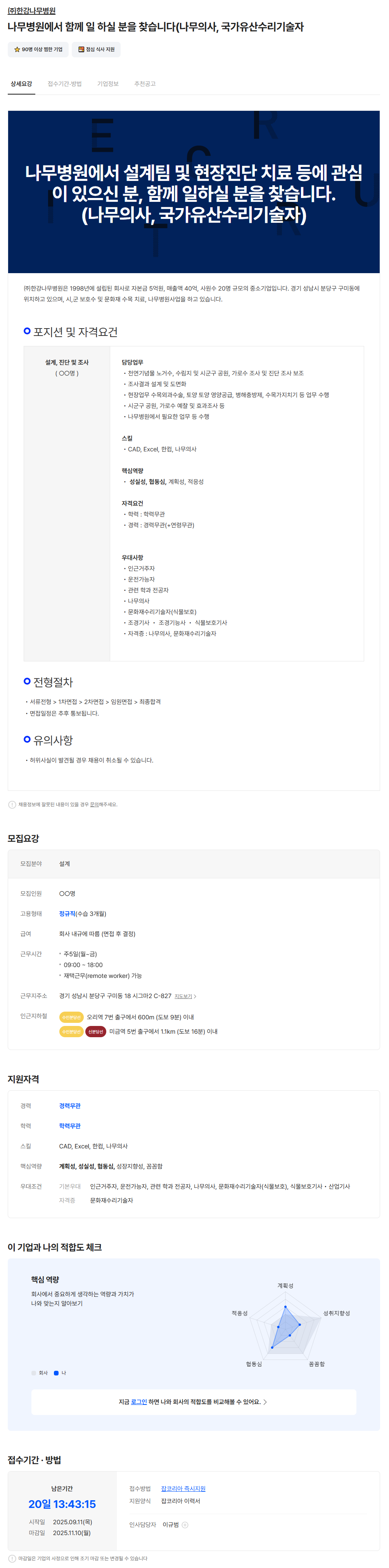 - 잡코리아 채용공고 - 링크주소 : https://www.jobkorea.co.kr/Recruit/GI_Read/47679342?Oem_Code=C1&logpath=1&stext=%EB%82%98%EB%AC%B4%EC%9D%98%EC%82%AC&listno=3&sc=630