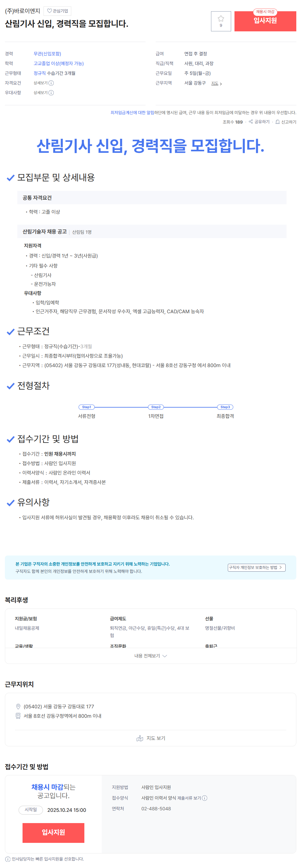 - 사람인 채용공고-링크주소 : https://www.saramin.co.kr/zf_user/jobs/relay/view?isMypage=no&rec_idx=52131558&recommend_ids=eJxVjrkRw0AMA6txTvBH7ELUfxe%2BkeZ4crhDcIFQuEnE1ZBPfQMNq6yF2KgyqCohikGwO3TCTIK1VYoos5fZpUrmV9CtXNhPGELaUTWZua8gVvHLbKz0MyN9dR%2Bzm7dN%2BODlj4wqpn8zHTOTIan36h%2F8Nz0y&view_type=search&searchword=%EC%82%B0%EB%A6%BC%EC%84%A4%EA%B3%84&searchType=search&gz=1&t_ref_content=generic&t_ref=search&relayNonce=3e6d2c5b7fed725d2aa2&paid_fl=n&search_uuid=aa3dec47-2fdc-4a3d-8f58-e539a382ea63&immediately_apply_layer_open=n#seq=0