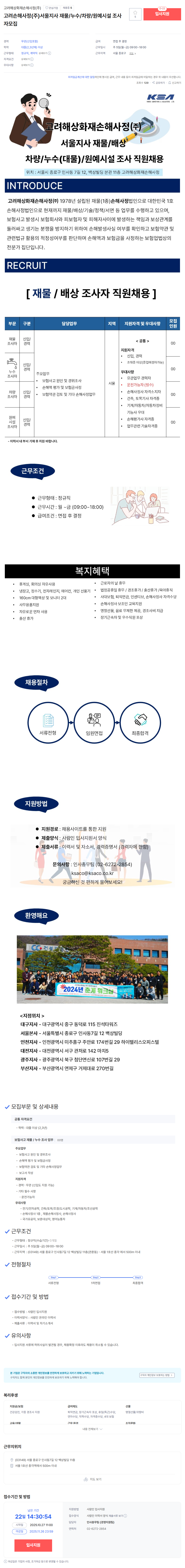 [한국해상화재손해사정(주)] 농협 원예시설 전담조사자 채용(경남, 제주) - 25년 12월...
