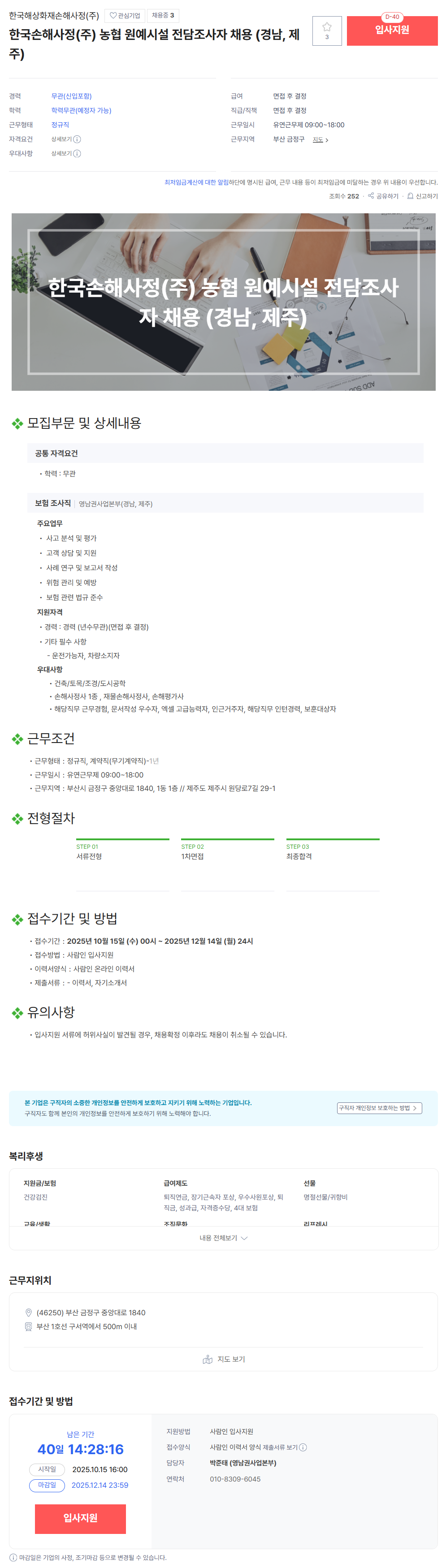 -사람인 채용공고 - 링크주소 : https://www.saramin.co.kr/zf_user/jobs/relay/view?isMypage=no&rec_idx=52046384&recommend_ids=eJxVzssRQlEIA9Bq3CcQfmsLsf8ufM8ZL7o8A4QEhwjUq8lHPcNIyG7iJjWtzsOR%2BR%2FbdZaNzhhbhlM6RF%2B3WFLusYzK5tbQpU1Ggp7fKWcs8qdGjsF3mqPqjXKLPo9YHcLWYAGts4y6HtnedkKf5DcNbz%2Bv&view_type=search&searchword=%EC%86%90%ED%95%B4%ED%8F%89%EA%B0%80%EC%82%AC&searchType=search&gz=1&t_ref_content=generic&t_ref=search&relayNonce=7180f8a8a54d3bae6b01&paid_fl=n&search_uuid=65dc5a4f-6809-4d0f-a412-3aca284fdf2d&immediately_apply_layer_open=n#seq=0