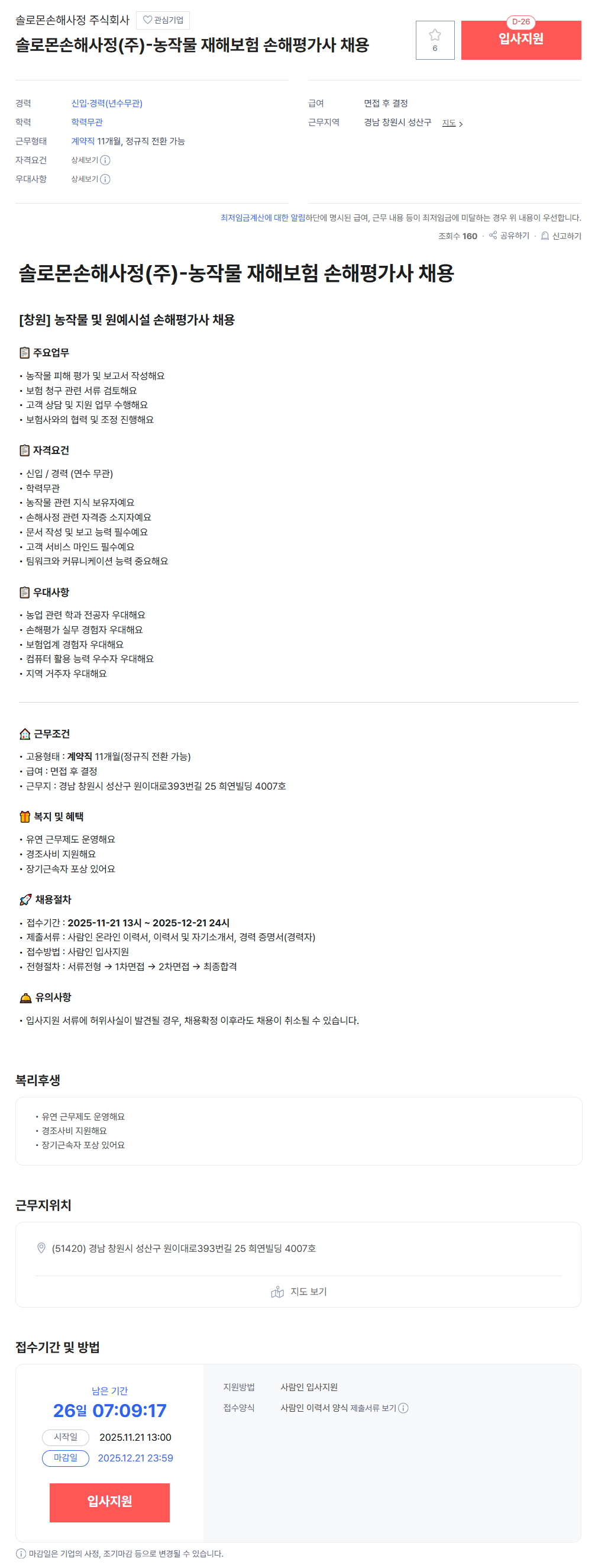 - 사람인 채용공고 - 링크주소 : https://www.saramin.co.kr/zf_user/jobs/relay/view?isMypage=no&rec_idx=52230104&recommend_ids=eJxNj8GRA0EIA6O5PwgB4u1AnH8WN3aVh302XQKUsBmjv%2BX%2B16%2BEzyh50L4Y7Iy%2BFugz%2BlmfBozXGitCN%2BvVWbgIkzF2s7ppa33ctYfYRO2qmMnNQsrWvjFgPZ6cGtWjkYu4GCVq%2Bx5t2GycU%2Fmwkjo%2F%2BA8iiD%2Fp&view_type=search&searchword=%EC%86%90%ED%95%B4%ED%8F%89%EA%B0%80%EC%82%AC&searchType=search&gz=1&t_ref_content=generic&t_ref=search&relayNonce=6606202ca2196d89db09&paid_fl=n&search_uuid=d103edb9-c2a9-4d0a-9c3c-4f8cfb0364f4&immediately_apply_layer_open=n#seq=0
