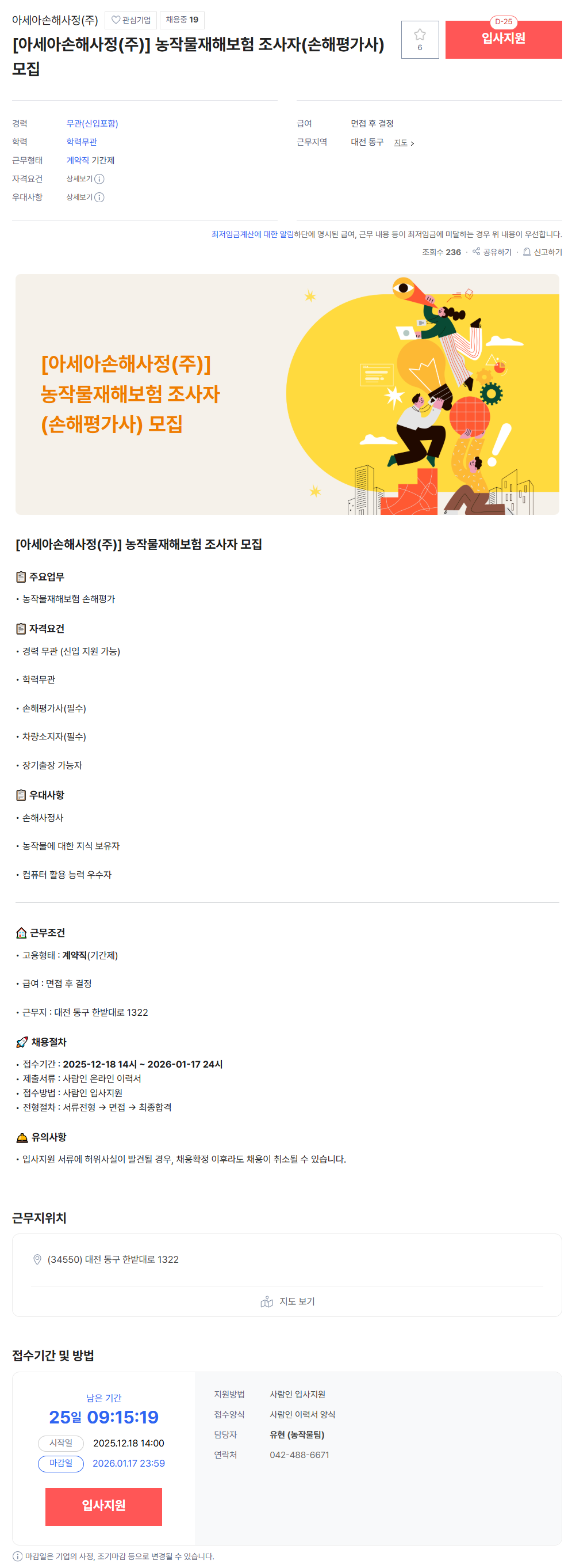 [세종화재해상자동차손해사정(주)] 손해평가사 직원 채용 - 26년 02월 13일까지 |