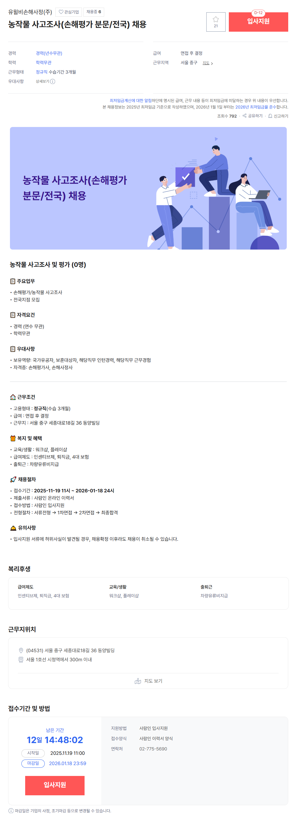 - 사람인 채용공고- 링크주소 : https://www.saramin.co.kr/zf_user/jobs/relay/view?isMypage=no&rec_idx=52347846&recommend_ids=eJxNzrERxEAMAsBqnCN0SFz8hXz%2FXdjj4ORwBw1CFE3k34Grf6IEFoeZ8n4YL9NeiENJhg9X7QoN16YmlXORw%2B7AOo8Ioea4XHR8qhpZhx3PsE8aZUxzo8h3xg3Auy%2Bp&view_type=search&searchword=%EC%86%90%ED%95%B4%ED%8F%89%EA%B0%80%EC%82%AC&searchType=search&gz=1&t_ref_content=generic&t_ref=search&relayNonce=4b6be6aab2a7bb86bf6e&paid_fl=n&search_uuid=6997d18c-84a0-4456-af8f-baeff0ab58dd&immediately_apply_layer_open=n#seq=0