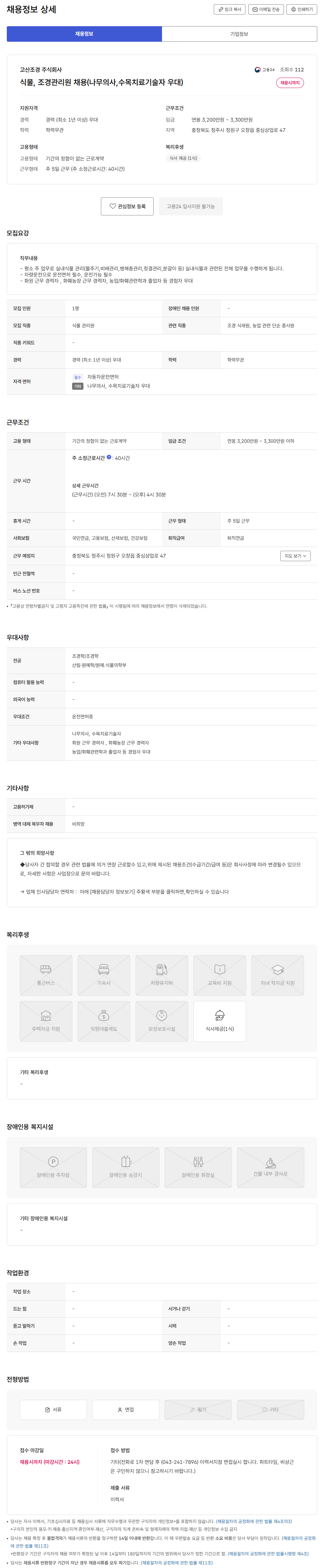 [고산조경 주식회사] 식물, 조경관리원 채용(나무의사, 수목치료기술자 우대) - 채용시까지 학습관리자 / 2026.02.03