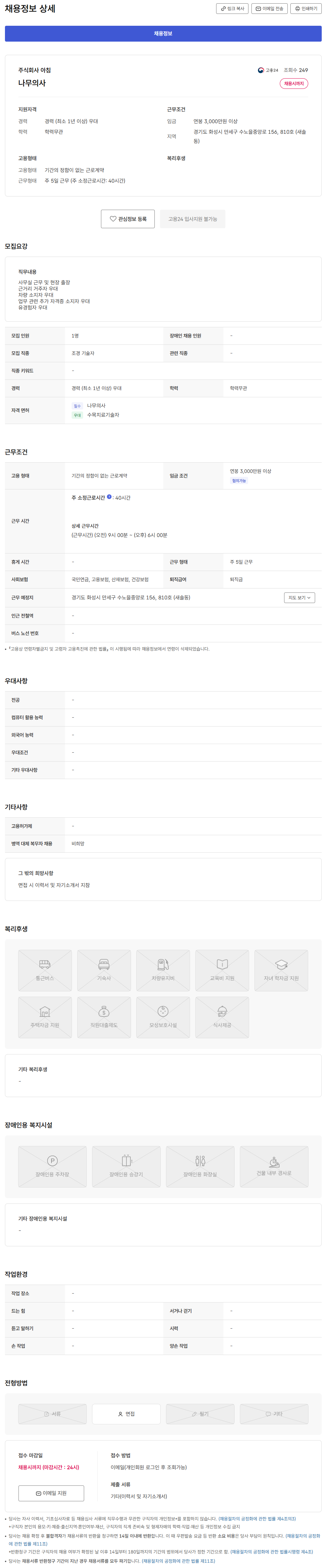 - 고용24 채용공고 - 링크주소 : https://www.work24.go.kr/wk/a/b/1500/empDetailAuthView.do?wantedAuthNo=K180032602030096&infoTypeCd=VALIDATION&infoTypeGroup=tb_workinfoworknet