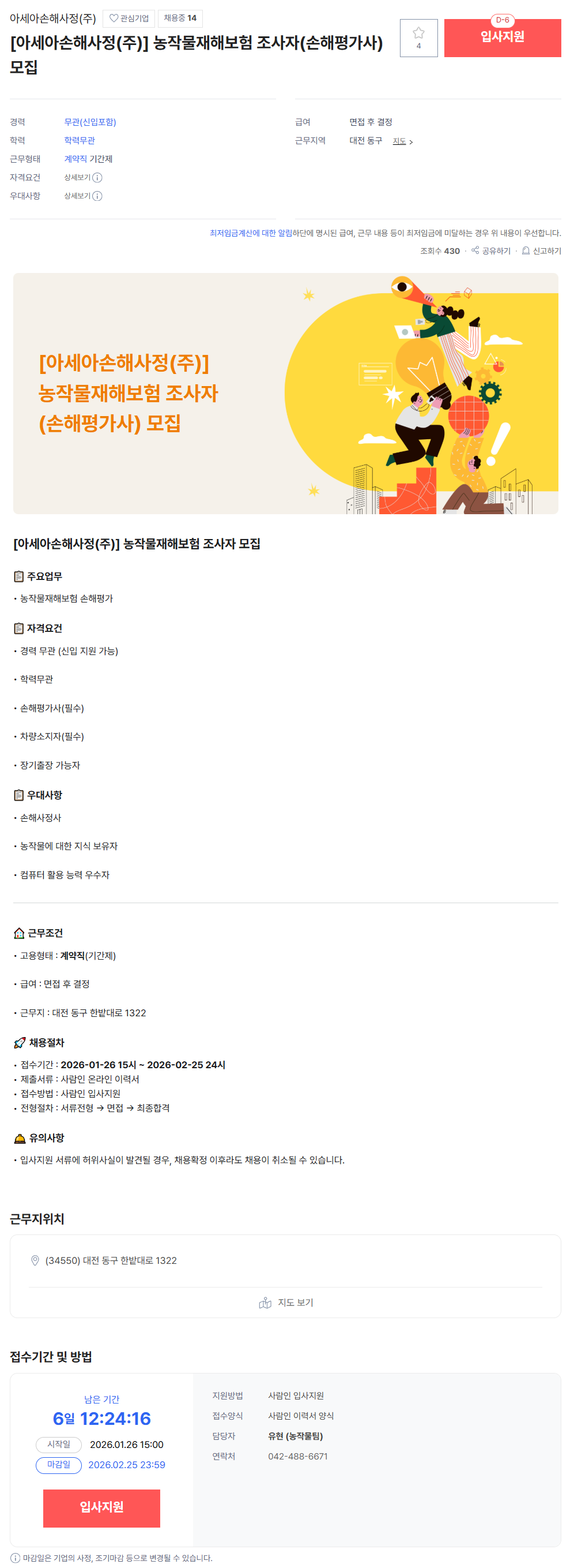 [태평양손해사정(주)] 경북센터 원예시설 조사 직원 채용(신입/경력) - 26년 2월 27일... |