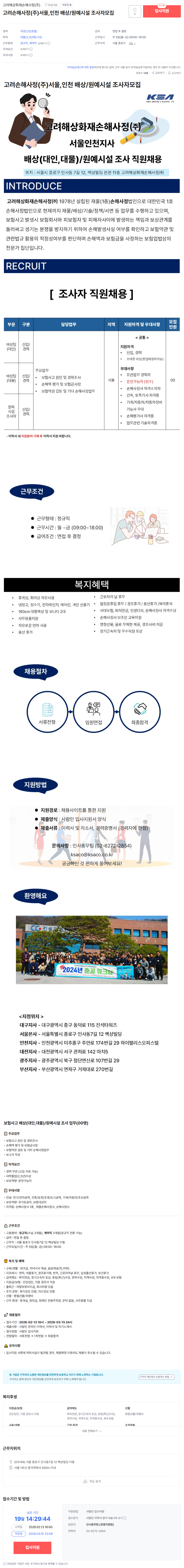 [티에스에이손해사정(주)] 티에스에이손해사정 정책보험팀 손해평가사 (계약직) 채용 ... |