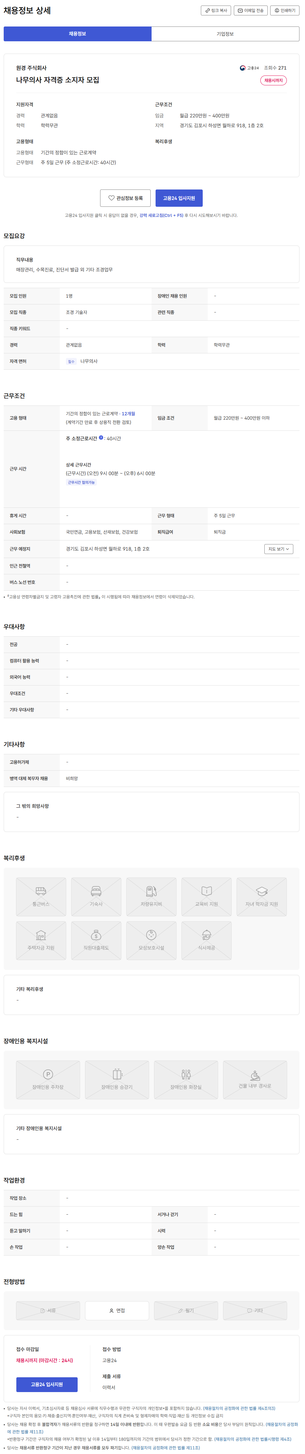 - 고용24채용공고 - - 링크주소 : https://www.work24.go.kr/wk/a/b/1500/empDetailAuthView.do?wantedAuthNo=K151222603240043&infoTypeCd=VALIDATION&infoTypeGroup=tb_workinfoworknet