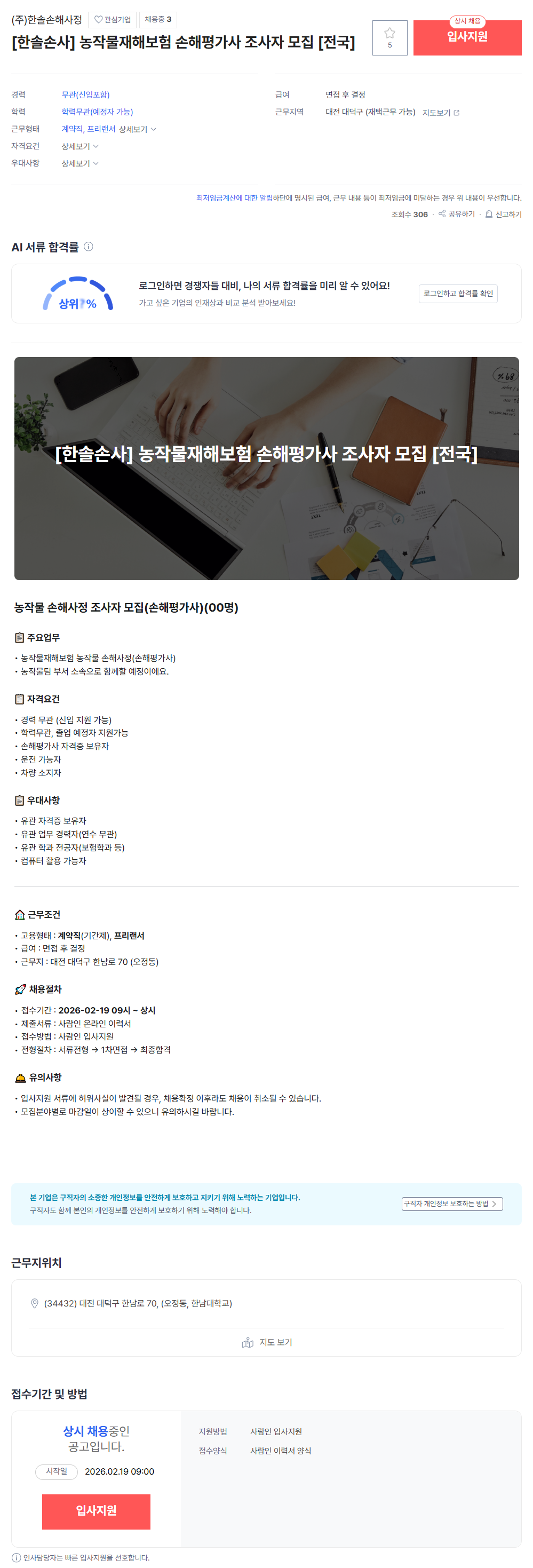 - 사람인 채용공고- 링크주소 : https://www.saramin.co.kr/zf_user/jobs/relay/view?view_type=search&rec_idx=53105592&location=ts&searchword=%EC%86%90%ED%95%B4%ED%8F%89%EA%B0%80%EC%82%AC&searchType=search&paid_fl=n&search_uuid=adc5bdb8-06f2-4d55-87ba-64e6133c040e&t_ref=search&t_ref_content=generic#seq=0