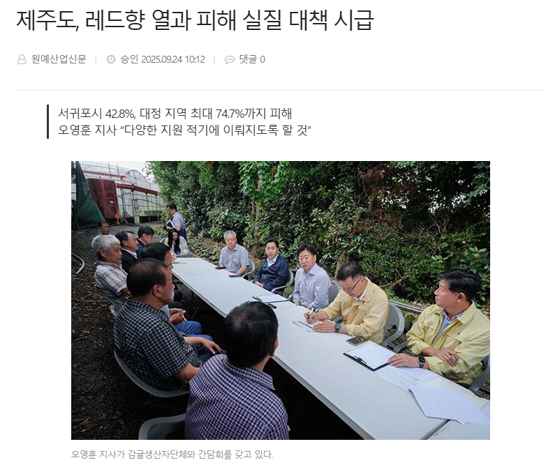 서귀포시 레드향연구회 오병국 회장은 근본적인 대책 마련의 시급성을 강조했다. 오 회장은 “올해 50~70%까지 열과 피해를 입은 농가들도 있다”며 “올해 30여 농가가 레드향 재배를 포기하고 천혜향이나 한라봉으로 품종을 바꾸고 있는데, 이렇게 되면 4~5년 뒤 다른 품종의 과잉생산이 우려된다”고 설명했다.