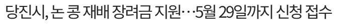 - [매일일보] 당진시, 논 콩 재배 장려금 지원…5월 29일까지 신청 접수