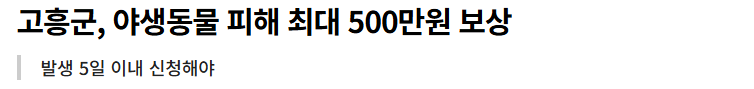 - [전남매일] 고흥군, 야생동물 피해 최대 500만원 보상